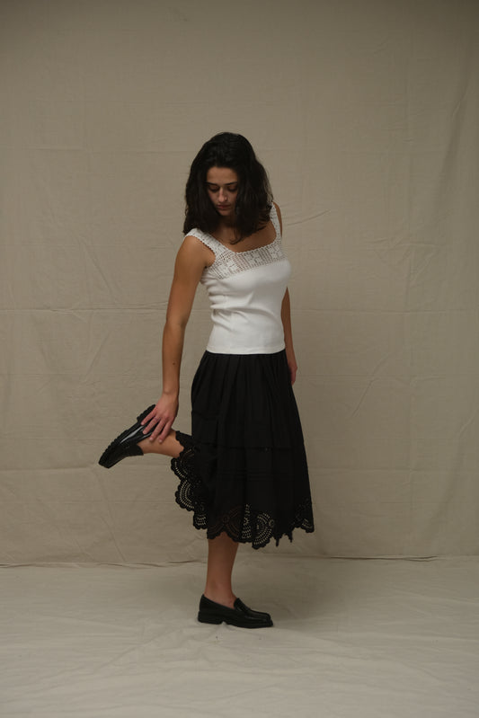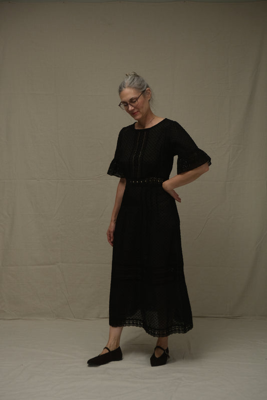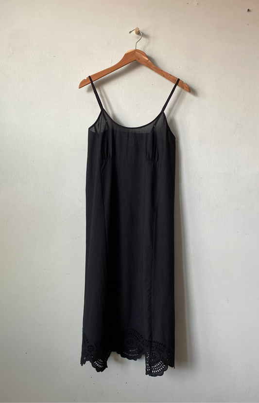 Princess Slip Dress Black Eyelet Scalloped Hem