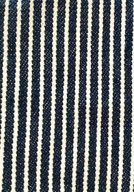 Old school lab coat with oak leaf metal shank button closure, contrast interior cuff facing, angled patch pockets, adjustable back belt. White topstitching and contrast keyhole buttonhole thread. Oversize fit. Available in Indigo RR Stripe and a Mini Indigo Stripe.